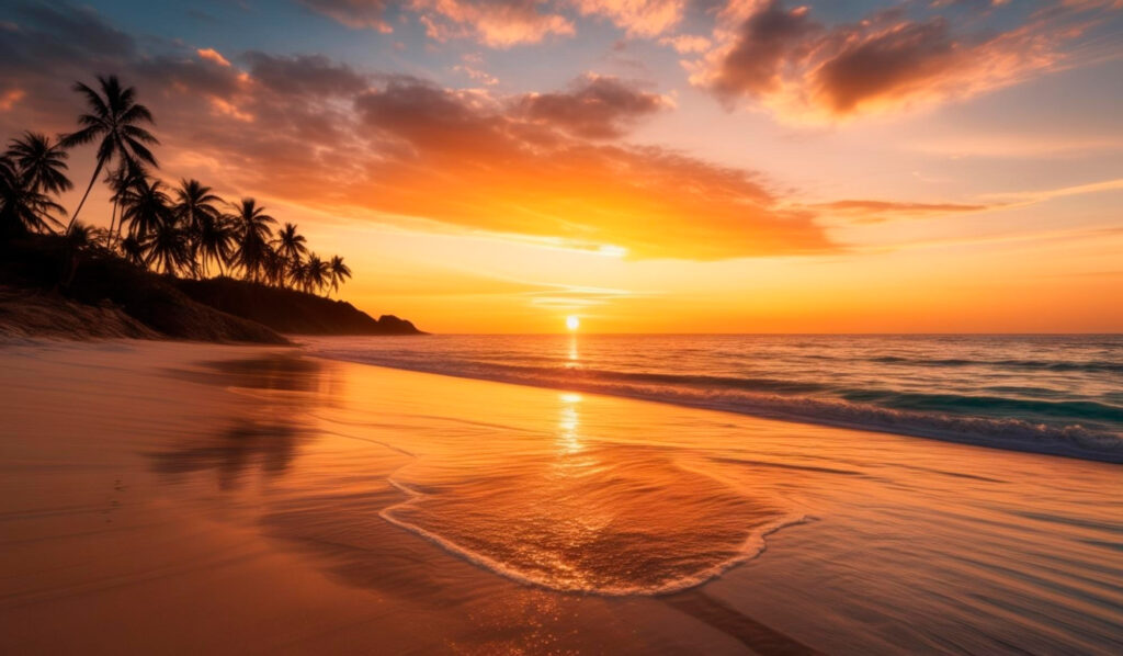 Um dos momentos mais mágicos de Caraíva acontece no fim do dia, quando o rio se encontra com o oceano. O céu se transforma em um espetáculo de cores, criando um cenário único para fotos e contemplacão.
