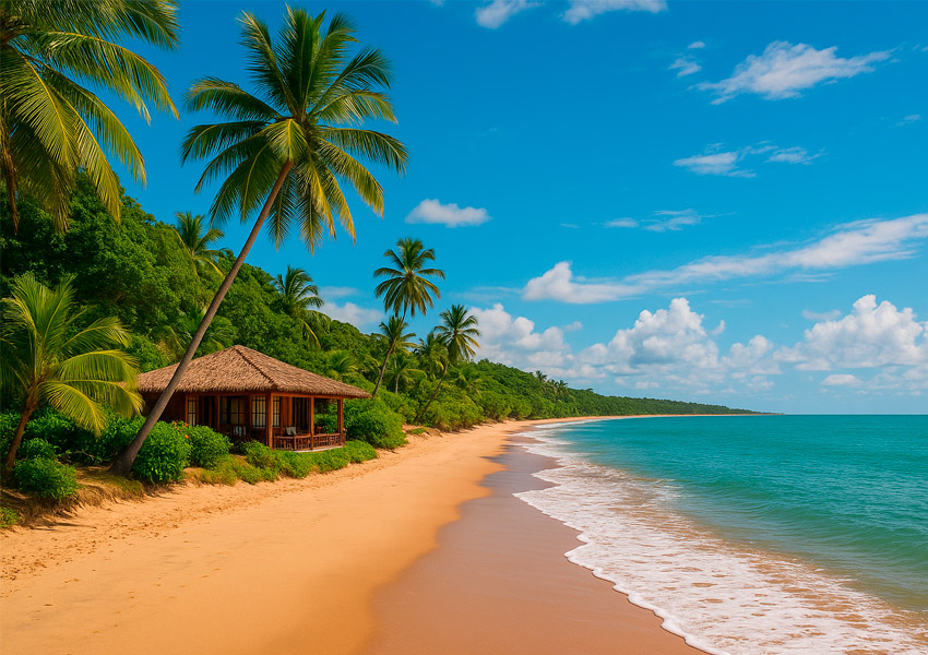 Imagine chegar ao fim da tarde em uma praia isolada, onde o único som é o das ondas e o vento nas folhas. Ali, uma mesa posta com flores, velas e pratos frescos da culinária local te espera.